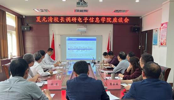 1026日下午,校长夏元清在副校长瞿博阳、党政办公室主任郑常青、秘书科副科长樊岸青的陪同下,到电子信息学院调研,学院全体领导班子成员、各专业系室负责人、教师代表等参加座谈。学院党委书记邹海林主持座谈会。