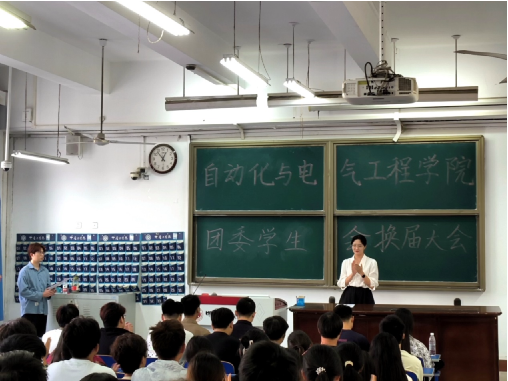 进入2024-2025学年团委、学生会第一次全体例会,新一届团委副书记钟艺登上讲台,对团委工作提出了宝贵建议和新的要求。学生会主席房帅上台发言,他表示将带领全体成员一起,全心全意为同学们服务。各部门新任部长也依次上台进行了简单的自我介绍。
