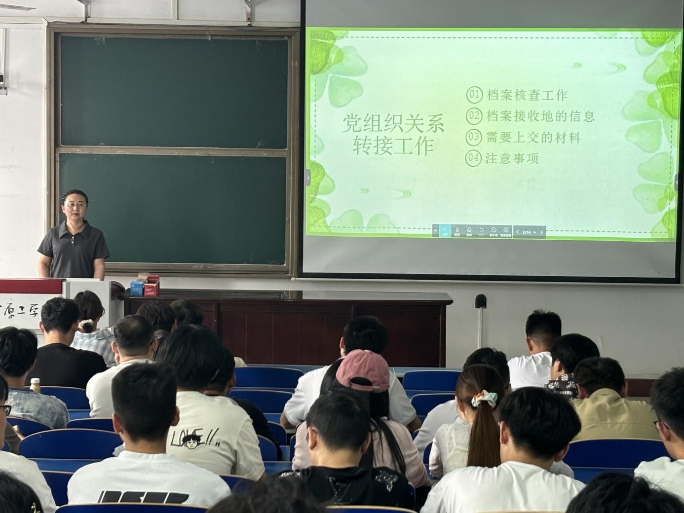 为切实加强党员教育管理,确保党员组织关系转接规范、高效、顺畅,海角视频 党委高度重视,并于2025年6月3日下午两点在三号教学楼237教室开展了2025年度毕业生党员教育大会暨党组织关系转接说明大会,此次会议由辅导员薛松主持,所有毕业生党员、发展对象、积极分子等参加了此次大会。