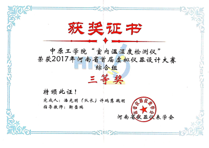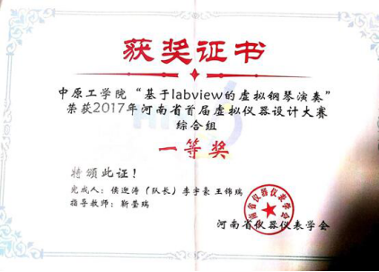 2017年度河南省首届虚拟仪器设计大赛一等奖1项、三等奖1项。